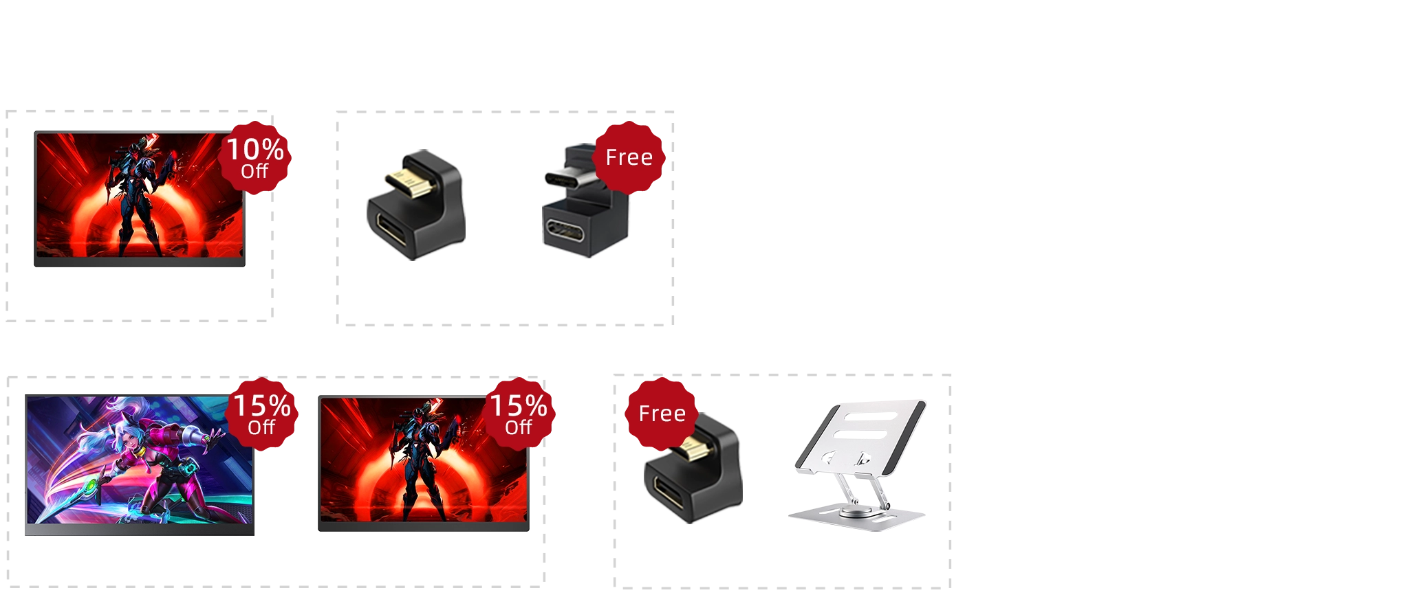 Buy one accessory and get one accessory free. There is no discount for orders that only purchase accessories separately. Accessories discounts can only be obtained when purchased in combination with the monitor.