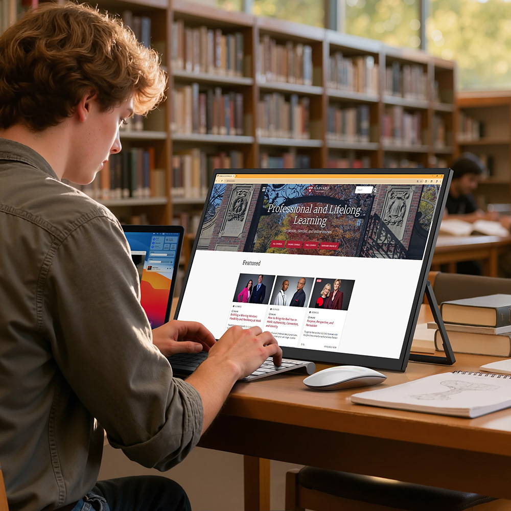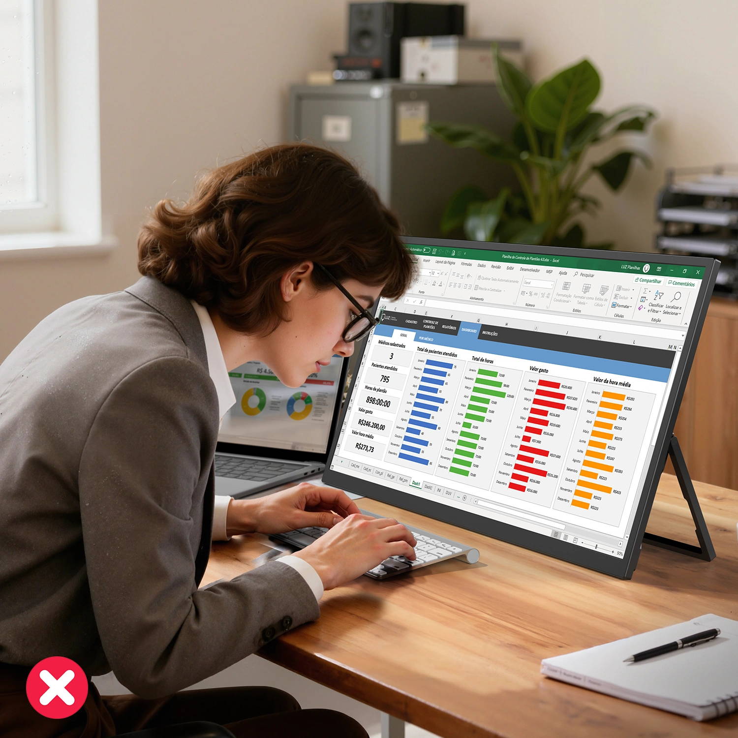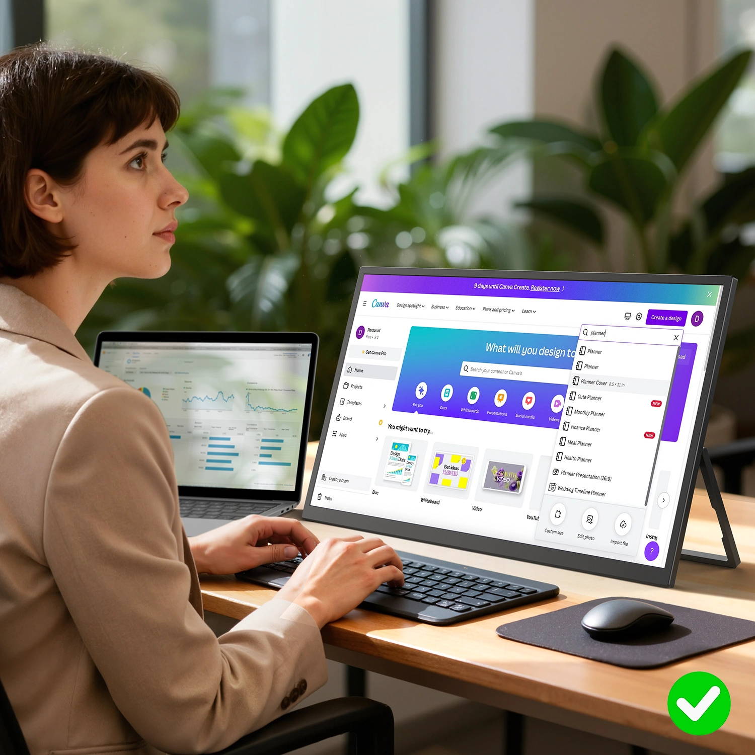 Most traditional LCD displays look best straight on. From wider angles, brightness can drop and colors may shift, reducing visual comfort and impacting the screen-sharing experience.